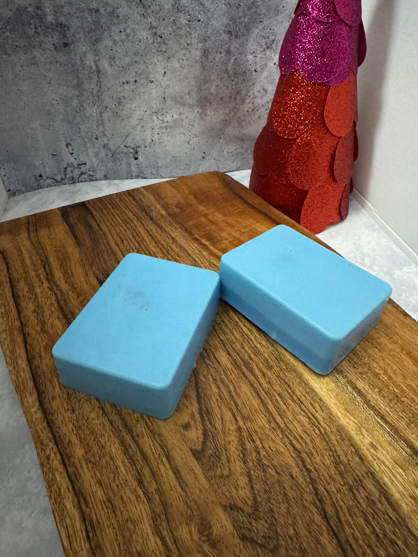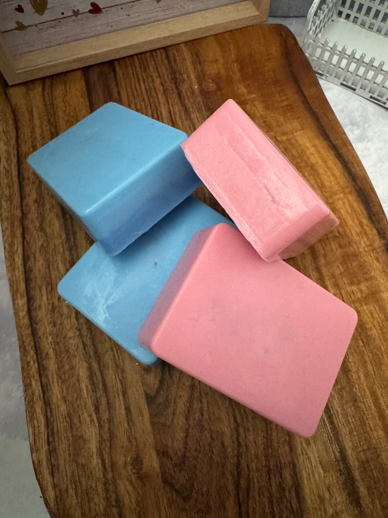 The let's play soap bar is a bubble gum fragrance. Color may vary. Can request another color if desired.