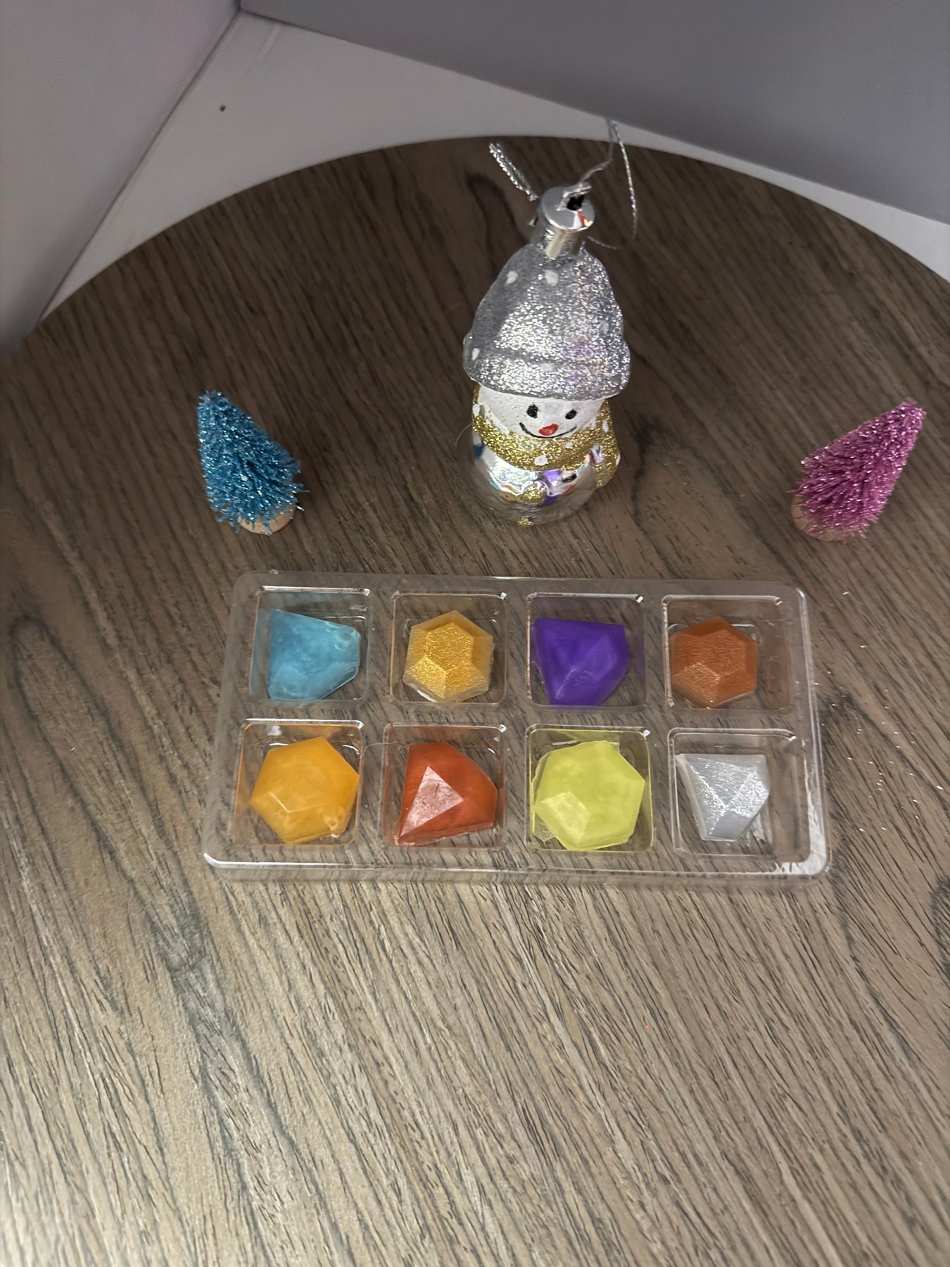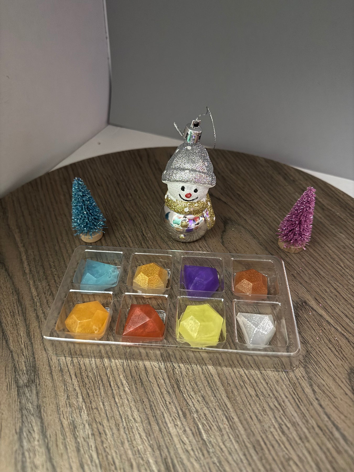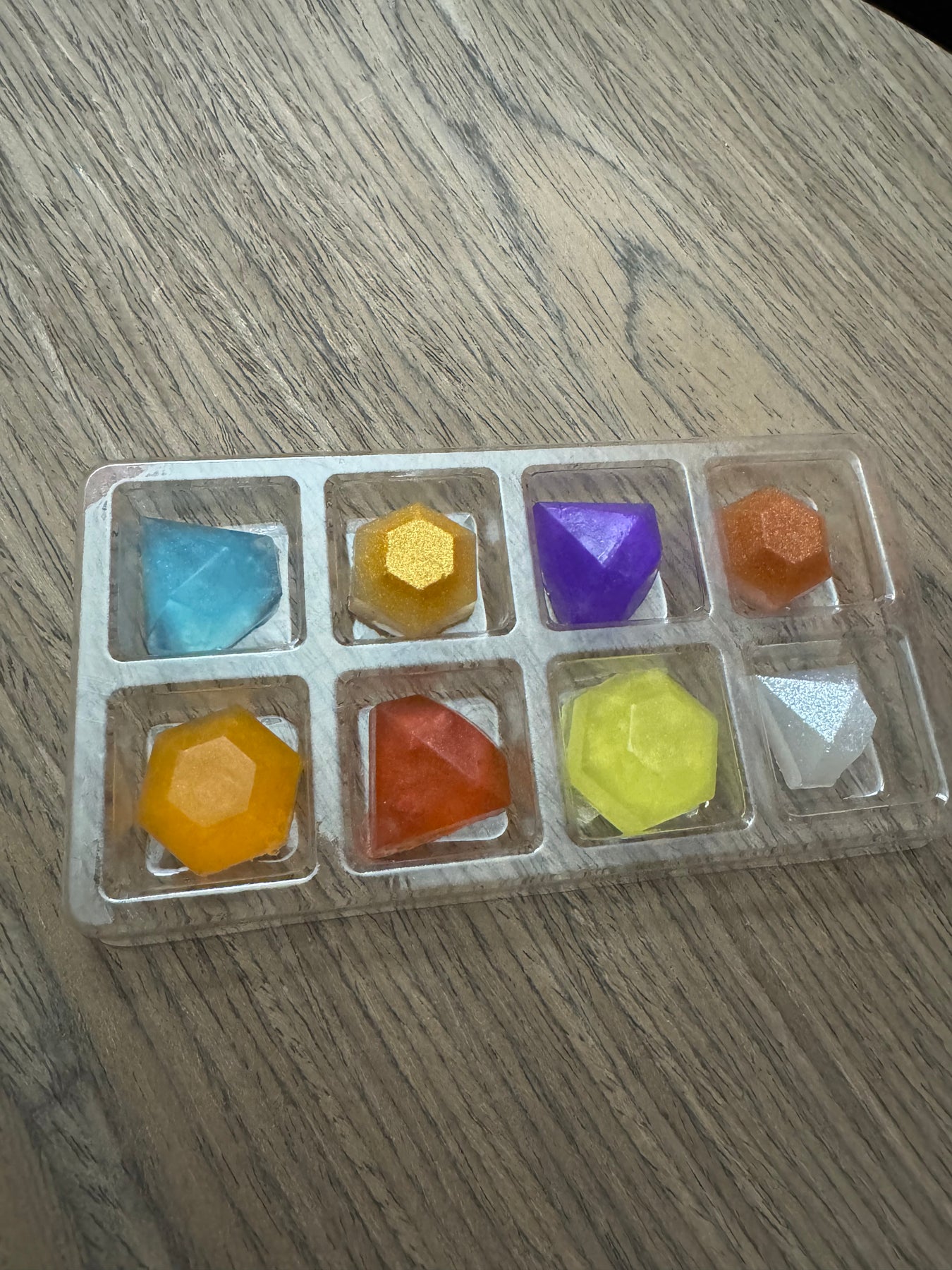 Looking for a small gift for someone special. Here you go, small gemstone looking soaps. All packages have different shapes, colors and fragrances. The packaging looks like a makeup pallet.