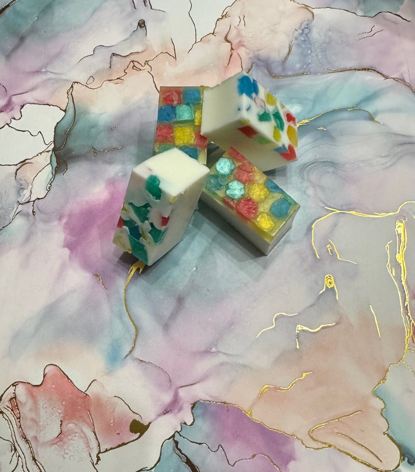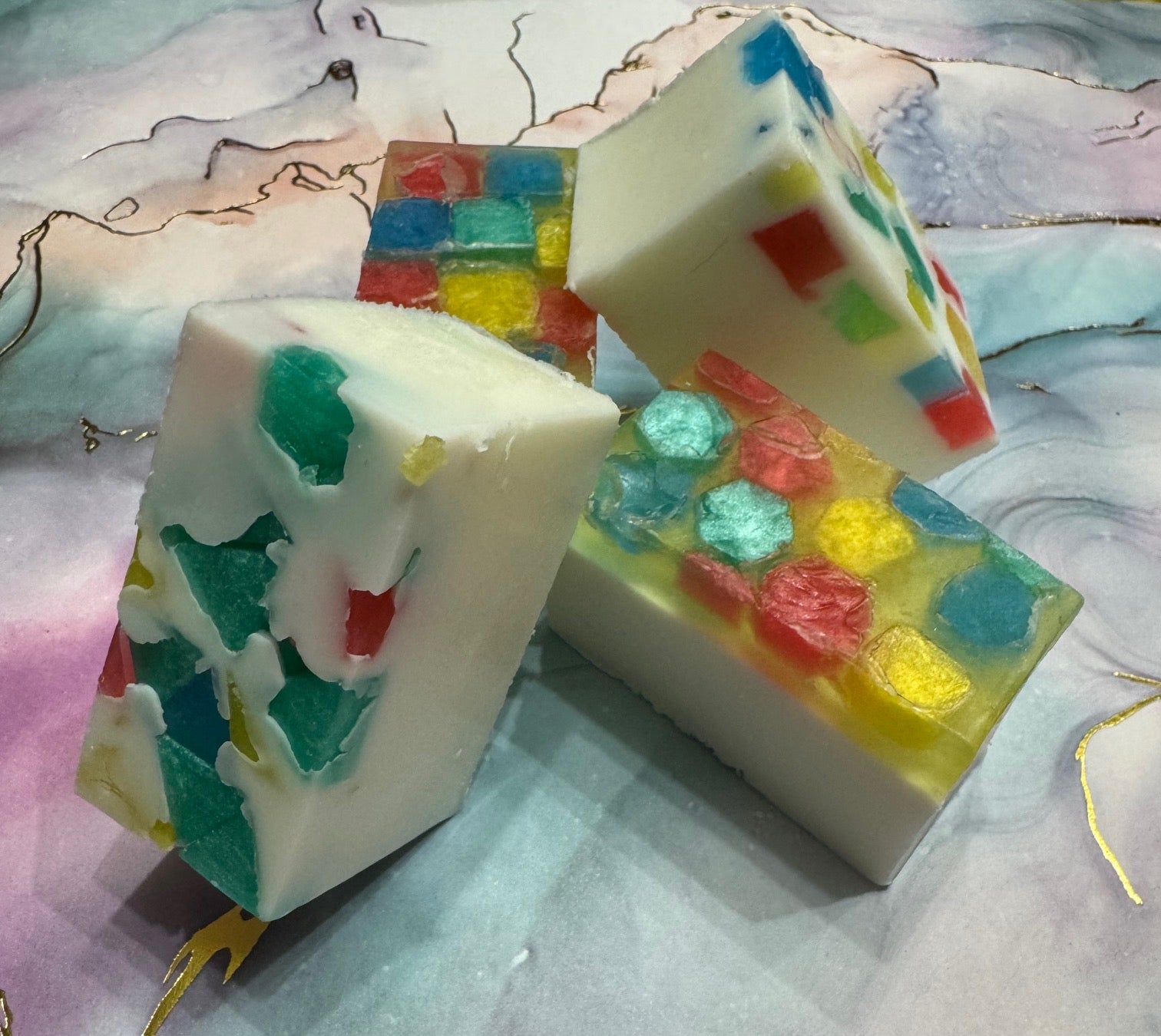 These glass tiles soap bars are a blueberry fragrance.