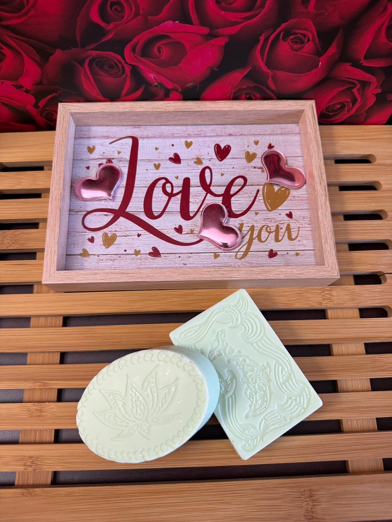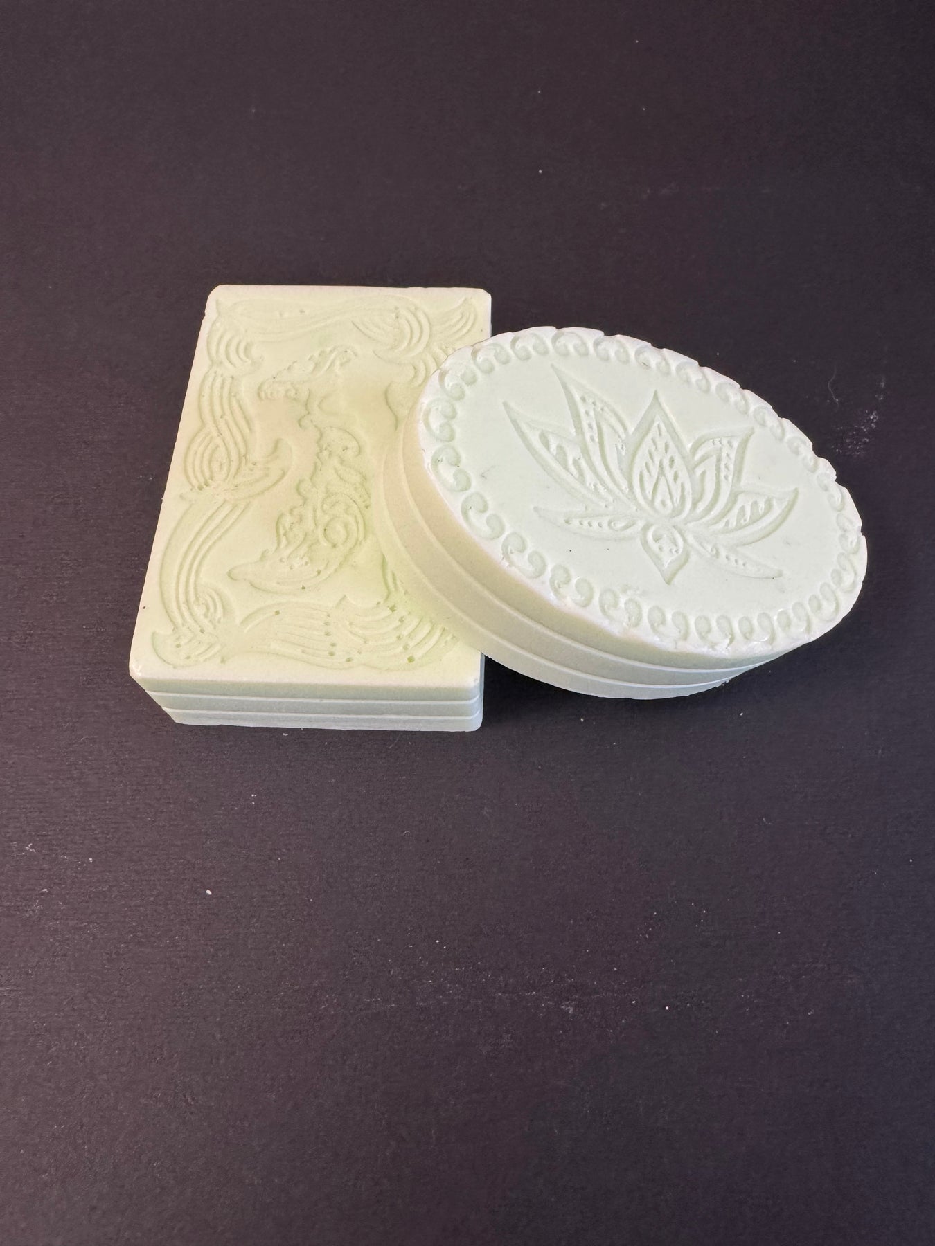 The bars come in either an oval or rectangle shape. The design on top will vary.